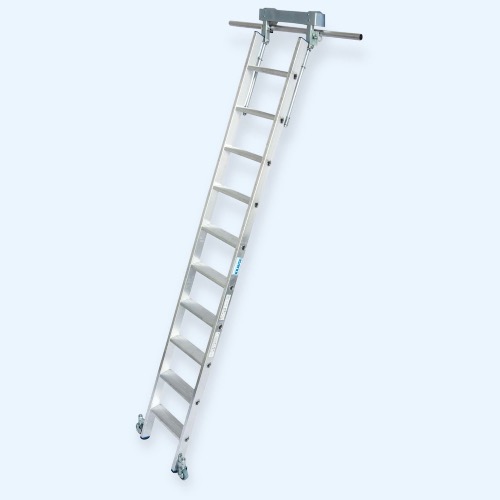 - Алюминиевая лестница со встроенной верхней ходовой системой для Т-образных шинных систем.