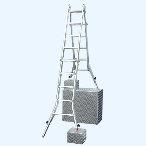 - Профессиональная четырехсекционная телескопическая алюминиевая шарнирная лестница применяется как двусторонняя стремянка, как приставная лестница и как две отдельные двусторонние стремянки с 4 встроенными удлинителями стоек (плавное регулирование высоты до 230 мм)