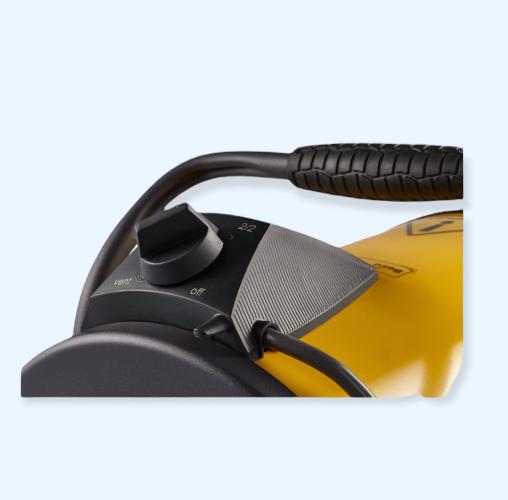 Тепловая пушка имеет современный дизайн и ярко-желтый цвет корпуса. Универсальная ручка-подставка позволяет легко перемещать прибор и предохраняет его от соприкосновения с другими предметами.