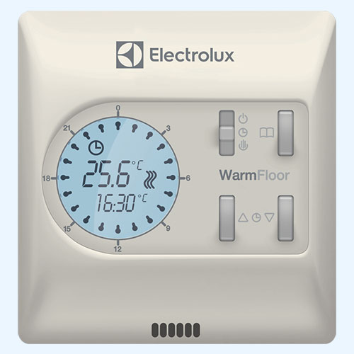 - Программируемый электронный терморегулятор с жидкокристаллическим дисплеем позволяет устанавливать индивидуальные температурные режимы в течение суток.