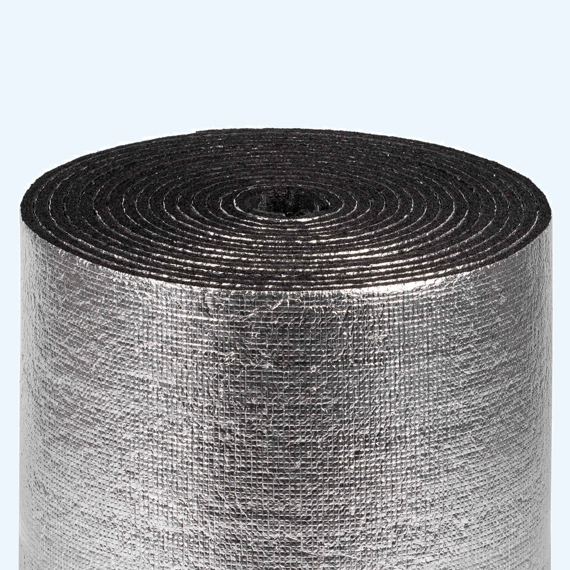 - Одна из сторон утеплителя ламинирована полированной алюминиевой фольгой, а с другой стороны нанесен самоклеящийся слой.