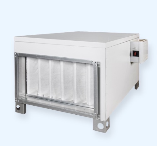 - Вентиляционная установка состоит из электрического нагревателя, вентилятора, встроенной автоматики и имеет фильтр класса М5.