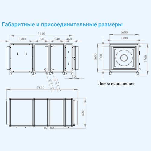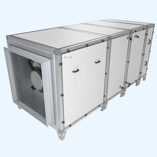 - Приточная установка с водным охладителем, водяным нагревателем и смесительным узлом с 2-х или 3-х ходовым клапаном (опция, подбирается исходя из типа водоснабжения).