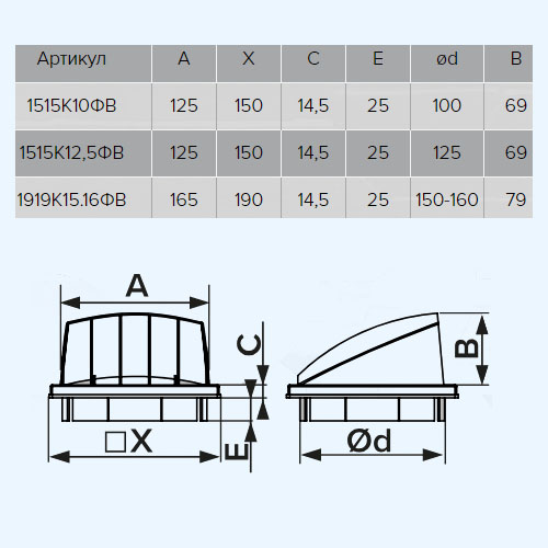 - Вытяжная решетка с квадратным выходом и фланцем.