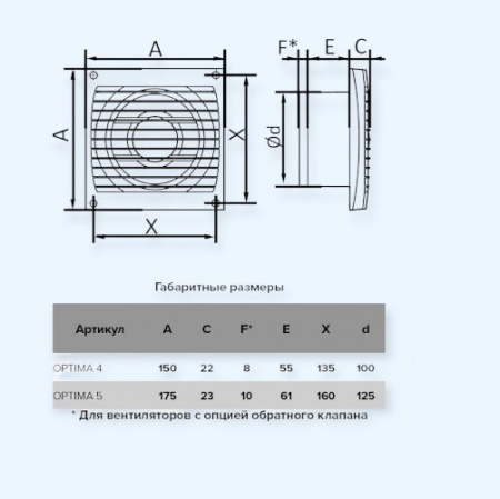 - Вентилятор OPTIMA применяется для постоянной или периодической вытяжной вентиляции санузлов, душевых, кухонь и других бытовых помещений.