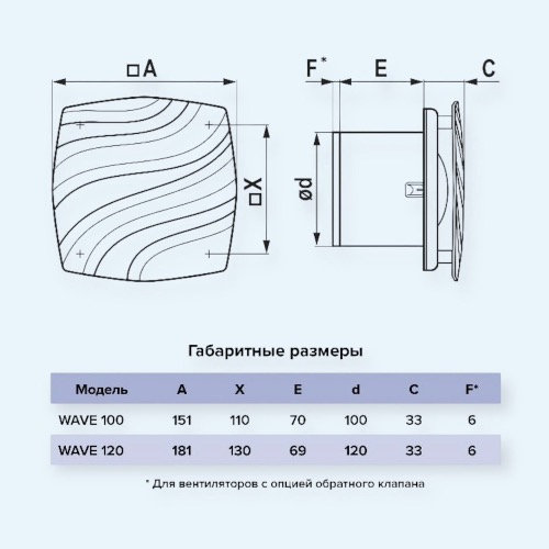 - Бытовые вентиляторы WAVE применяется для постоянной и периодической вентиляции санузлов, ванных комнат, кухонь и других помещений для удаления влаги и поддержания оптимального микроклимата.