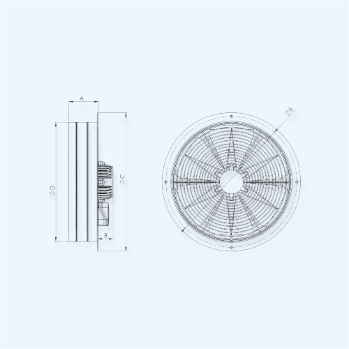 - Корпус и крыльчатка изготовлены из листовой стали с электростатическим порошковым покрытием.